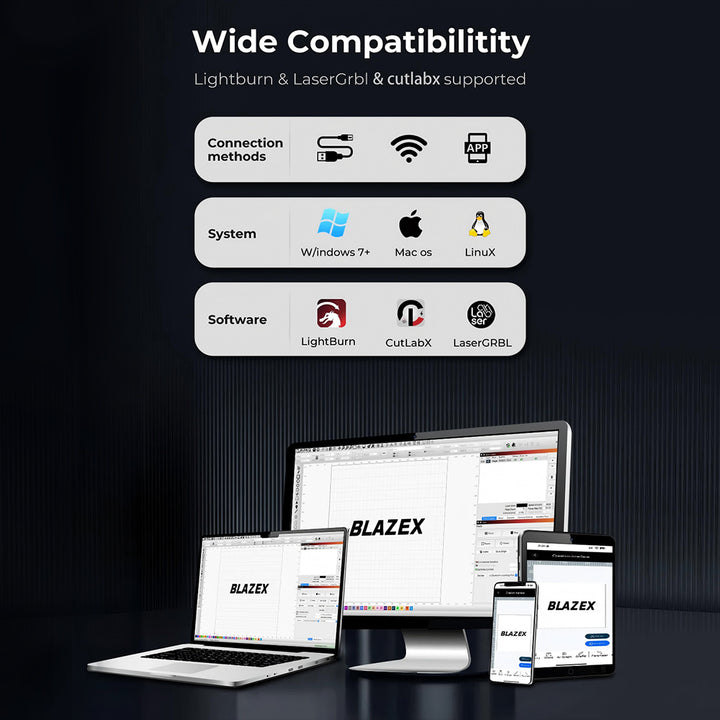 • User-Friendly App Control: Compatible with CutLabX, LaserGRBL, and LightBurn.