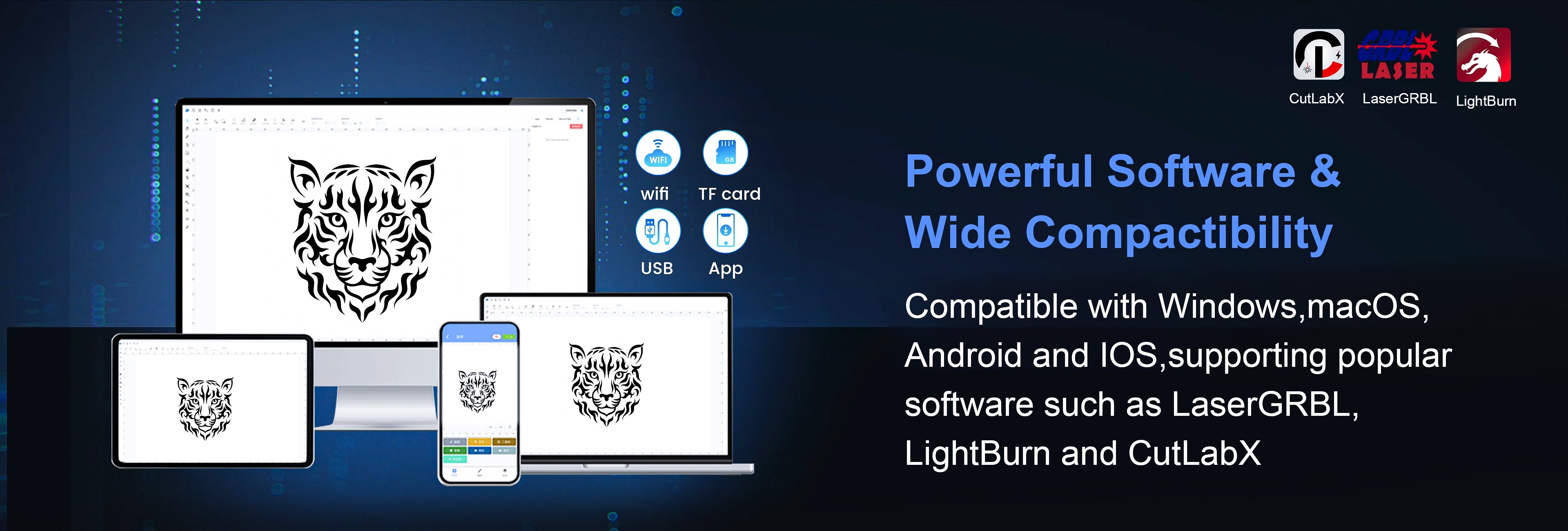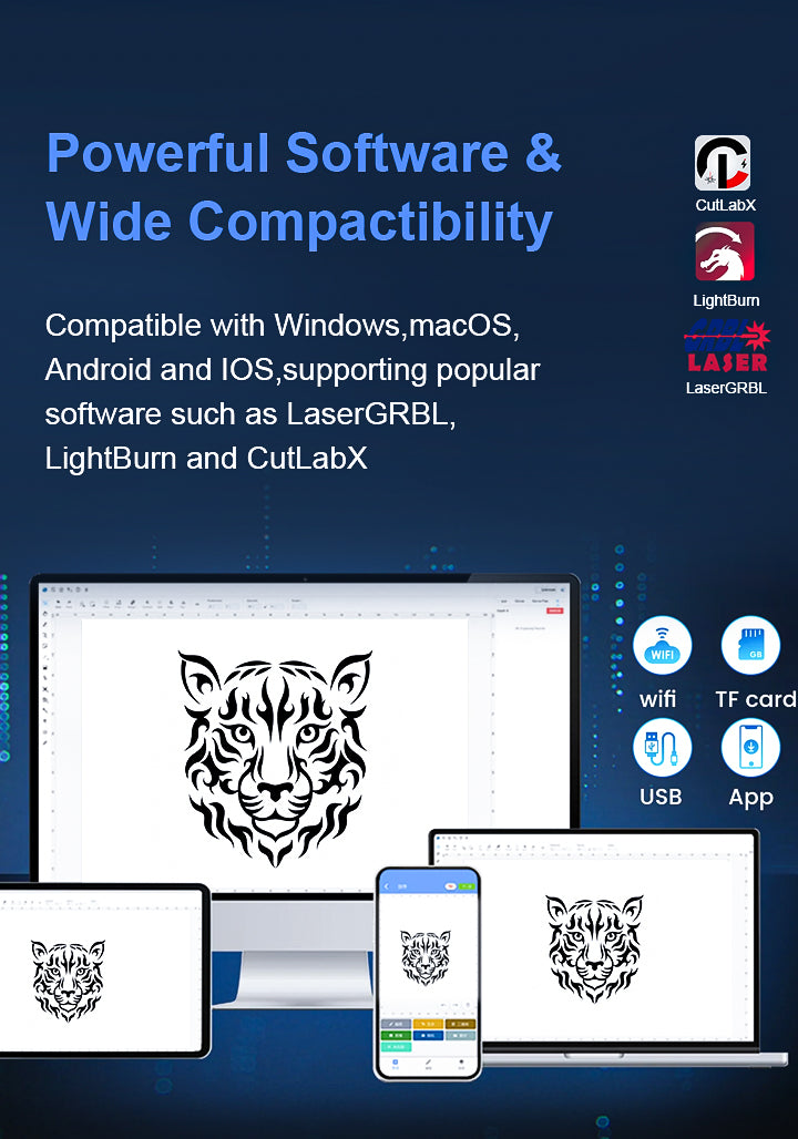 Smart App Integration: Compatible with CutLabX, LaserGRBL and LightBurn, giving you full creative control through your preferred software.