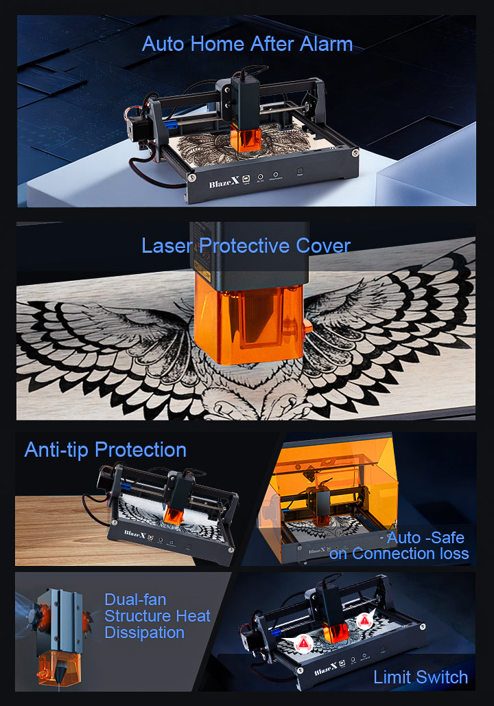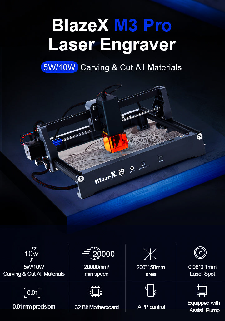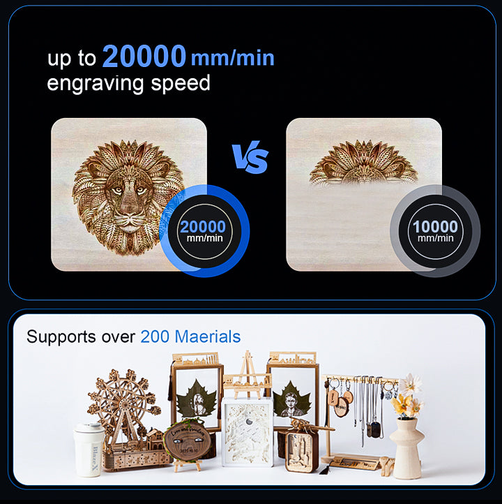 - Beginner-Friendly Precision: Designed for effortless assembly, it offers engraving accuracy down to 0.01 mm and speeds up to 20,000 mm/min — perfect for those new to laser engraving.